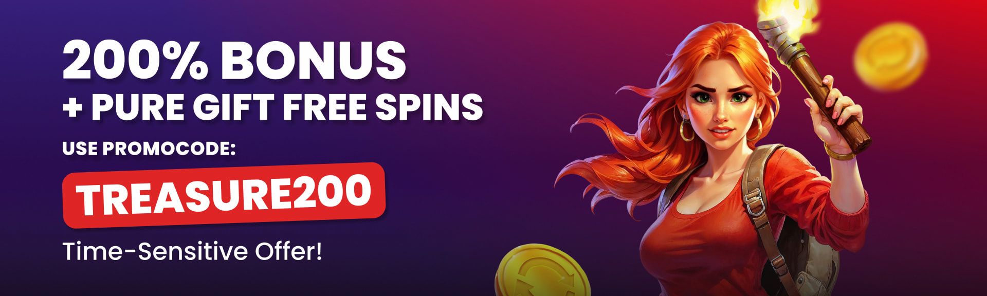 TREASURE200 is a tiered deposit bonus that scales with your deposit size, unlocking higher bonus percentages and pure Free Spins gifts as you move up the tiers. Designed for flexible and strategic play, it comes with no max bet restrictions and instantly credited Free Spins that carry no wagering requirements, while bonus funds are meant for extended sessions within a 30-day wagering period.