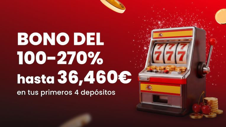 Hasta un 270% de bono de bienvenida garantizado en dinero real para tus primeros 4 depósitos.